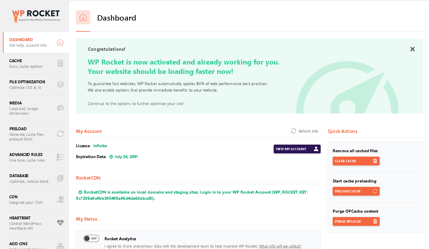 - Bản có phí và bản miễn phí khác xa rất nhiều về phương thức sử dụng. Gần như bản miễn phí của WP Rocket không có gì nổi bật.