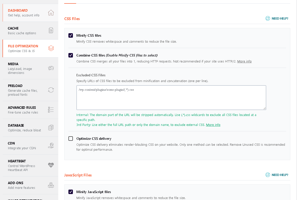 Tại File Optimization tối ưu hóa tập tin có rất nhiều các tính năng nổi bật các về loại bỏ, nén hoặc gộp các tập tin. Rất nhiều tính năng nổi bật khác tại ứng dụng WP Rocket đang đợi bạn khám phá.
